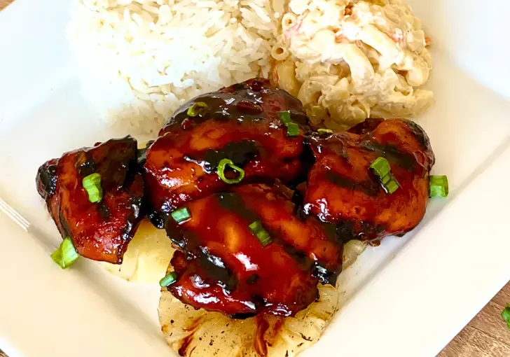 Once done, transfer the chicken to a serving plate and top or serve with the grilled pineapple rings. Traditionally, this dish is paired with steamed white rice and Hawaiian-style macaroni salad for a full, comforting meal.