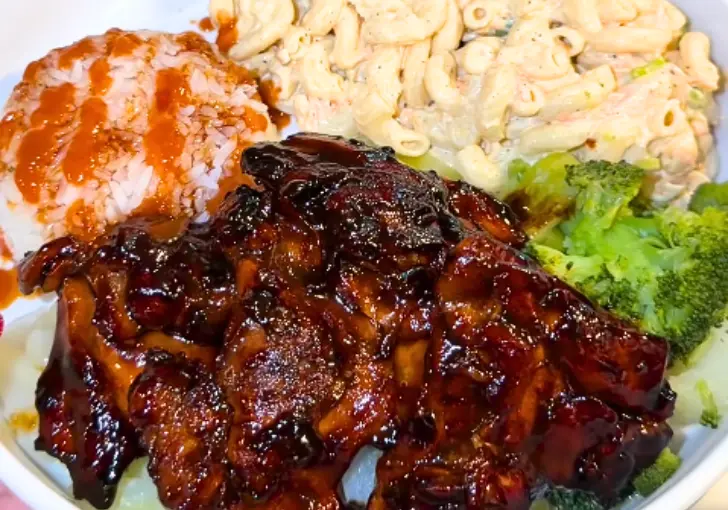 This dish became well-known thanks to Hawaiian Bros, a restaurant that brought island-style food to the mainland.