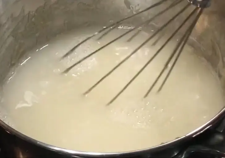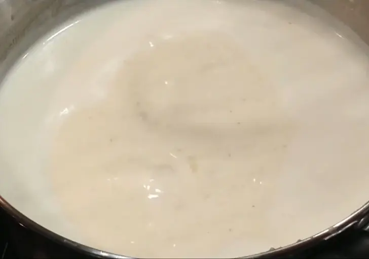 Slowly pour in the chicken broth, stirring constantly to prevent lumps. The mixture will begin to thicken almost immediately. Let it simmer for 10 minutes, stirring every 1–2 minutes so it doesn’t stick to the bottom. The sauce should become smooth, creamy, and thick.
