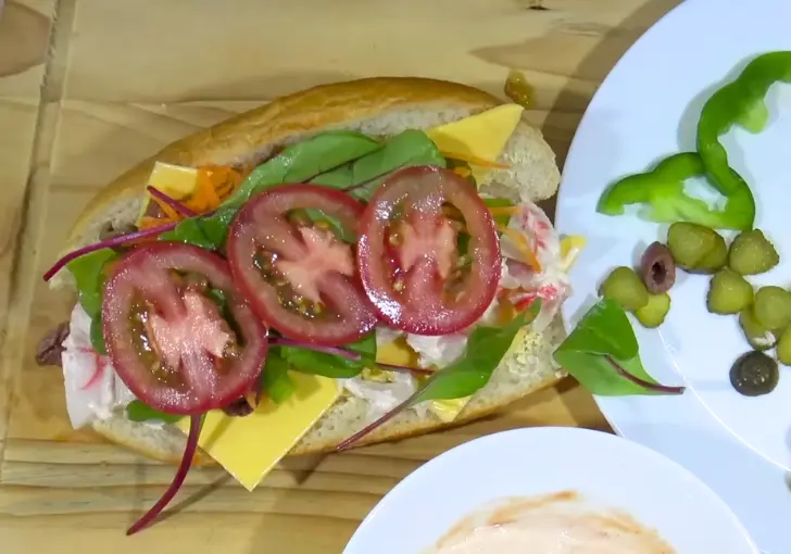 - Step 3: Prepare the Bread Base – Slice the sub roll in half lengthwise, optionally toast lightly, and spread butter or garlic spread on the inside.