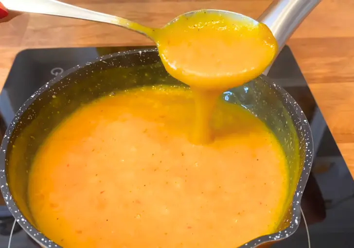 - Pour the blended sauce into a small saucepan and bring it to a gentle simmer over medium-low heat. Let it simmer for about 15 minutes, stirring occasionally so nothing sticks.